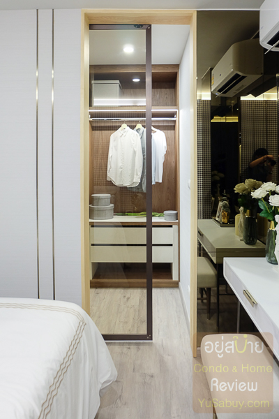ความพิเศษของห้องนอนใหญ่ คือ มี Walk-in closet มาให้ค่ะ พร้อมที่กั้นแยกส่วนเป็นกระจกสีชา