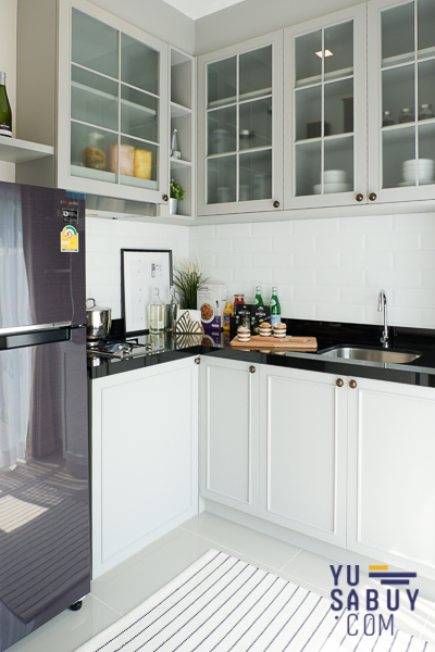ในห้องครัวทางโครงการไม่ได้ก่อเคาร์เตอร์มาให้ ทำให้เราสามารถปรับเปลี่ยนเป็นห้องอเนกประสงค์หรือห้องทำงานได้ตามใจเรา