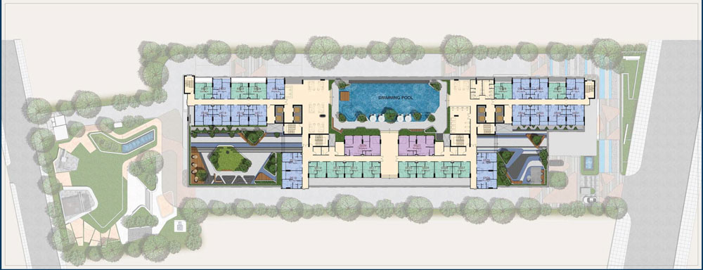 ที่ดินของโครงการ The Trust Condo งามวงศ์วาน เป็นแนวยาวติดถนน 2 ด้าน โดยทางเข้าหลักจะเข้าจากถนนงามวงศ์วาน ชั้น 1 เป็นที่จอดรถ มีร้านค้า 6 ร้าน และที่ชั้น 5 จะมี Facility อย่างสระว่ายน้ำ, สวน และเริ่มมีห้องพักแล้ว