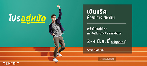 The post SC Asset จัดแคมเปญ โปรอยู่หมัด เป็นใครก็ต้องคว้าให้อยู่มือ “เซ็นทริค ห้วยขวาง สเตชั่น” คอนโดแต่งครบ พร้อมอยู่ ติด MRT รับข้อเสนอสุดพิเศษ 3-4 มิ.ย นี้ appeared first on รีวิวคอนโด บ้านเดี่ยว ทาวน์เฮ้าส์ ทาวน์โฮม โดยอยู่สบาย.คอม (YuSabuy.com).